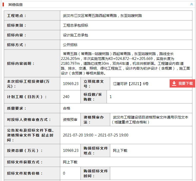 總投資10969萬,武漢市常青五路(常青路-姑嫂樹路)提升工程 發(fā)布日期:2021年07月22日 瀏覽次數(shù):4000 關(guān)鍵字: 公司 總投資10969萬,湖北省武漢市,常青五路(常青路-姑嫂樹路)提升工程